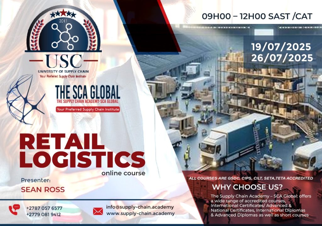 Join one of our engaging online lectures at the Supply Chain Academy a division of the University of Supply Chain(USCA)-Africa, presented by Sean Ross. This course delves into the intricacies of CORE(Modules), Want to master Retail Logistics, Production, Procurement, or Logistics in general? we turn skills into success—backed by accredited programs (GSDC, CIPS, CILT, SETA.) and real-world impact.